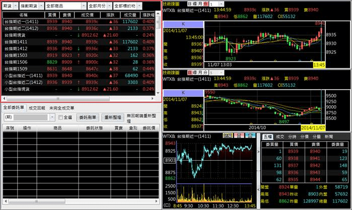 功能說明:提供國內期貨商品的行情報價、技術線圖、個股走勢、綜合明細資訊與證/期/權/港股/國外期貨/國外選擇權委託成交、證券庫存查詢功能。