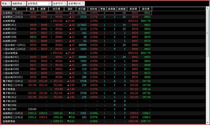 操作說明:點選功能表列的「國內期權」>「期貨看盤室」。