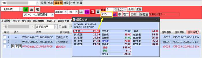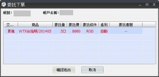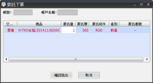 1.輸入欲下單商品、價位、數量、條件後,按「下單」。