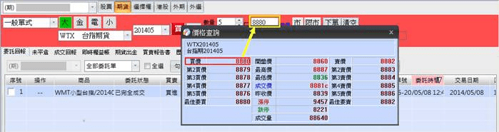 按「查價」,可帶入開盤價/最高價/最低價/成交價/昨收價/漲停/跌停/成交量/五檔買價/五檔賣價欄位裡的價位。