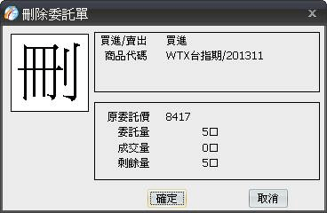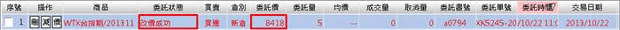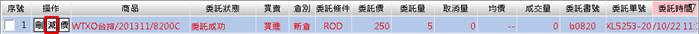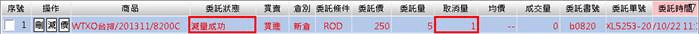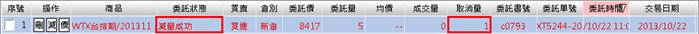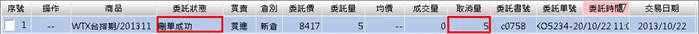 3.下方委託顯示區委託狀態顯示刪單成功。