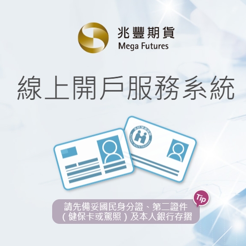 僅開放未曾於本公司開立期貨戶且年滿20至未滿70歲、未具他國稅務居民身分、非美國人身分之自然人申請。如您為外籍人士、法人、有授權下單人,請至各縣市服務據點或至本公司臨櫃辦理。