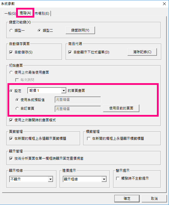 4.設定完成後,在任何報價頁面,只要按下鍵盤「F12」功能鍵,即可立刻切到自訂的首頁。