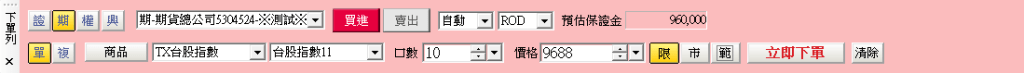 6.使用者輸入〔口數〕及〔價格〕後,會顯示預估保證金,依台灣期貨交易所公佈之期貨商品原始保證金為計算基準。