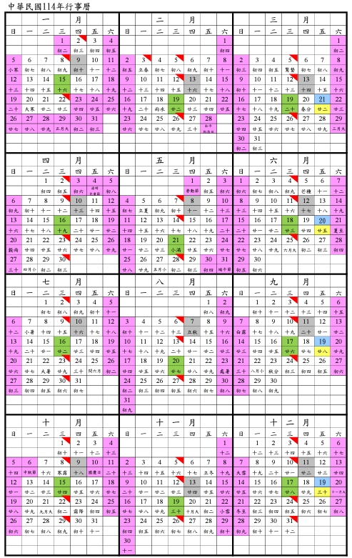 | 05月30日 (星期五) | 端午節 | 端午節為5月31日適逢星期六,依規定於前一日5月30日(星期五)補假。 |